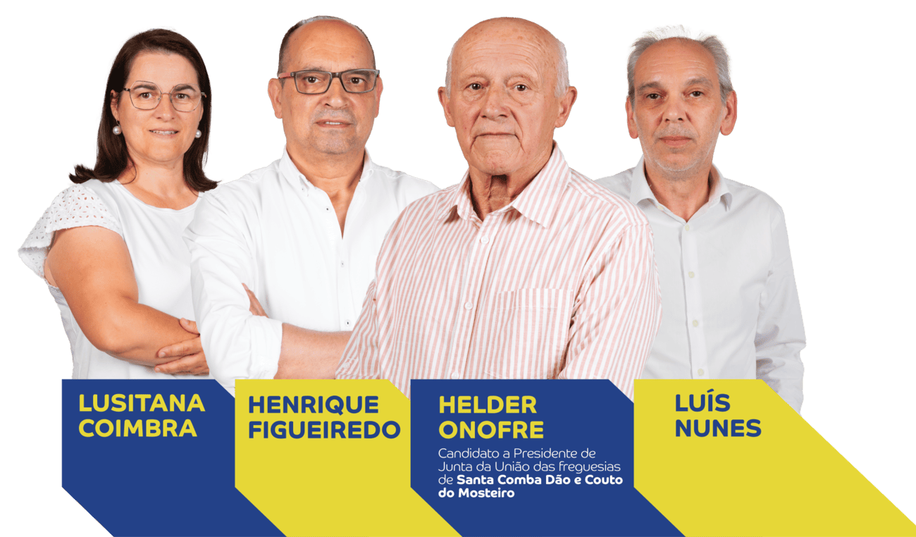A nossa candidatura Independente à União das Freguesias de Santa Comba Dão e Couto do Mosteiro nasce da vontade de servir com responsabilidade, proximidade e compromisso. Somos uma equipa unida, disponível e experiente, composta por pessoas com percursos diversos, mas com um objetivo comum: trabalhar em prol da nossa freguesia e das suas gentes.